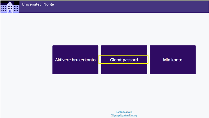 Etter å ha utført autentiseringen, ledes du videre til Account Claims hovedside og kan velge “Glemt passord”.